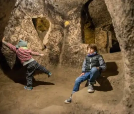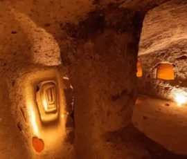 Es handelt sich um eine der größten unterirdischen Städte in Kappadokien. Diese bemerkenswerte Anlage wurde in weiches Vulkangestein gehauen und bot Platz für bis zu 20.000 Menschen. Sie umfasste Wohnräume, Lagerräume, Brunnen und Kapellen und ist damit ein beeindruckendes Beispiel für alte Verteidigungssysteme und das Leben unter schwierigen Bedingungen.
