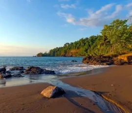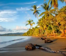 Uvita Beach is a magnificent natural wonder, shaped like a whale's tail. It is located within the Marino Balleno National Park. You can walk here for hours. There are many attractions in the area, including diving, horseback riding, visiting nature reserves, hiking to waterfalls, surfing, whale watching, and bird watching. Playa Uvita is still one of the most beautiful places to watch the sunset in Costa Rica.