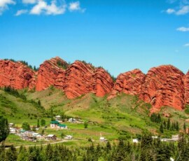 There is a legend associated with this complex of blood-red rocks: a long time ago, a Kyrgyz Khan went to a wise man to ask for advice on how to take revenge on his rival, who had seduced his wife. The wise man advised him to kill his wife and give her to his rival. If he was to have her, she had to be dead. The Khan did so, and seven bulls were slaughtered at the ceremony. The blood spurting from the young wife's heart flowed down the ravine along with the blood of the slaughtered bulls. The bulls turned into rocks.